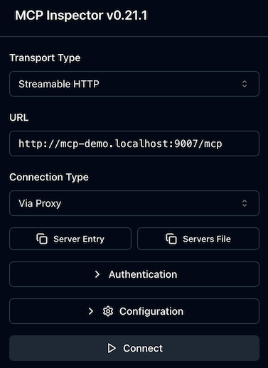 With that set, and running golem deploy, our MCP server is ready to be used at http://mcp-demo.localhost:9007/mcp using streamable HTTP protocol, authenticated by the mock OAuth2 server.